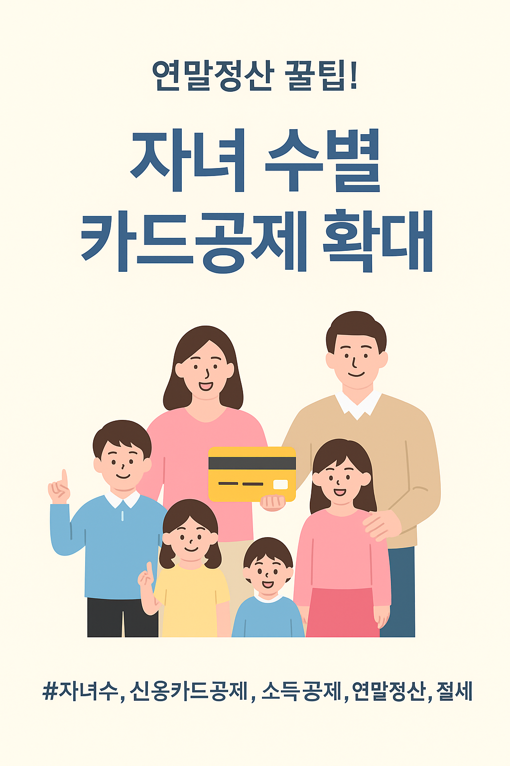 다자녀 가구를 위한 2025 신용카드 소득공제 한도 확대 소식을 전합니다. 자녀 수별 공제 혜택과 연말정산 절세 전략을 한눈에 확인하세요.