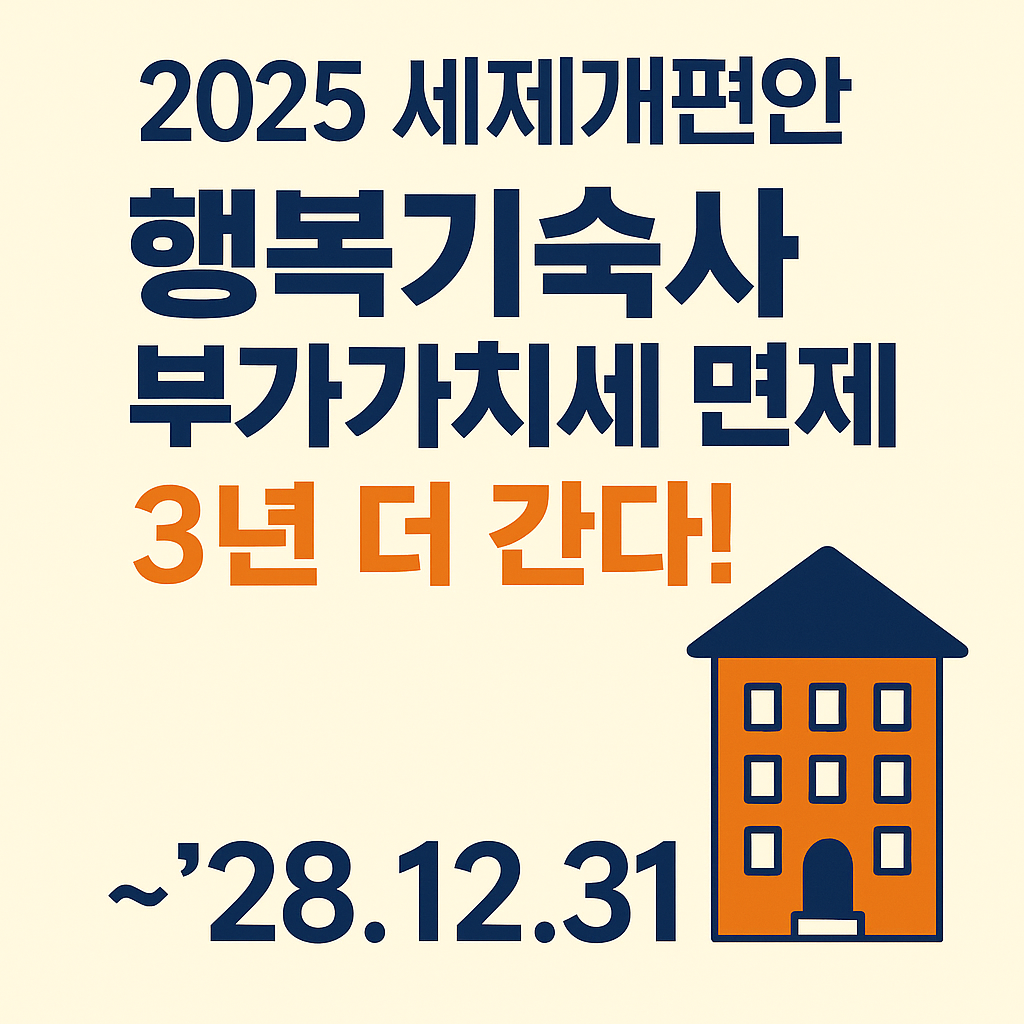 2025년 세제개편안으로 행복기숙사 기숙사비 부가가치세 면제 적용기한이 3년 연장되었습니다. 대학생·청년층 주거비 절감을 위한 핵심 제도를 확인하세요.